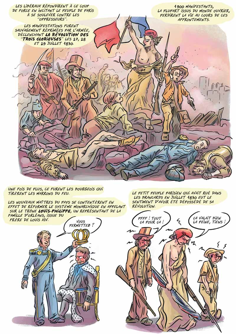 De l’émergence d’un peuple à l’époque médiévale jusqu’à la naissance de la classe ouvrière, cet album raconte tout un pan d’histoire vu de ceux qui ont monté des barricades et ont parfois payé de leur liberté ou de leur vie. Rigueur et humour (quand même).